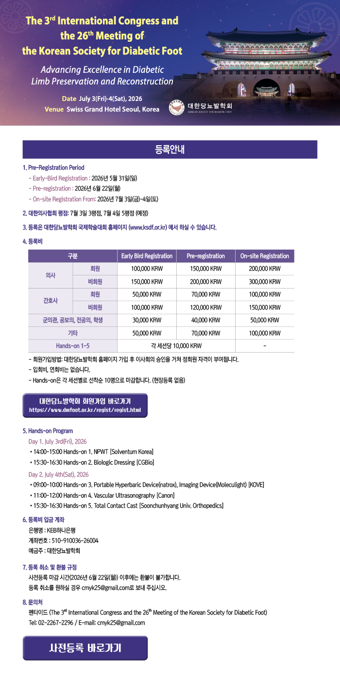 »çÀüµî·Ï ¾È³» The 3rd International Congress and 26th Meeting of the Korean Society for Diabetic Foot